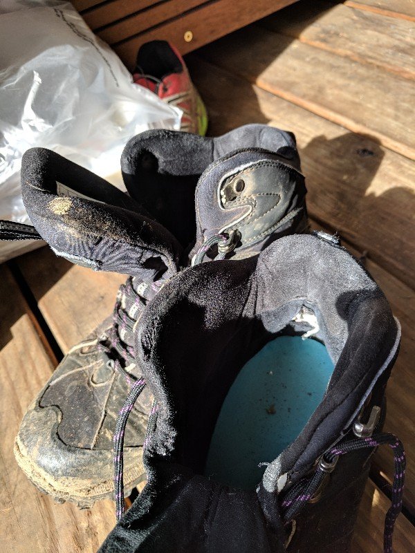 I found out why I was having blisters on my heels on the last two hikes. It dawned on me not because my socks but my boots were given me blisters. My boots were worn. The fabric was torn where my back of my heel is. The hole rubbed against my foot. I was thinking of using duct tape to tape it up. But I got a new pair!