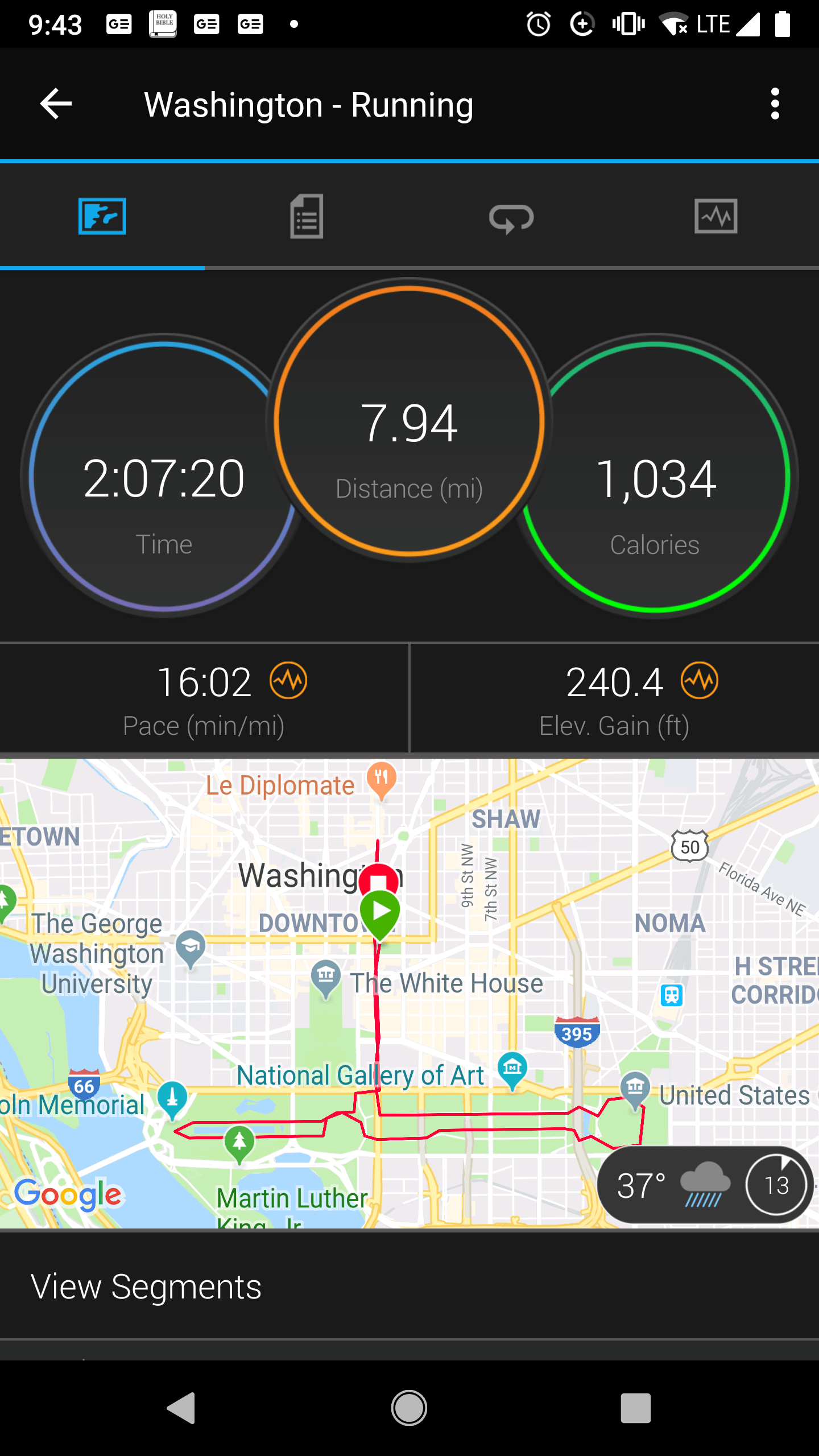 I put in around 8 miles. I walked probably more than running. It was just a day after the race and I was still sore.