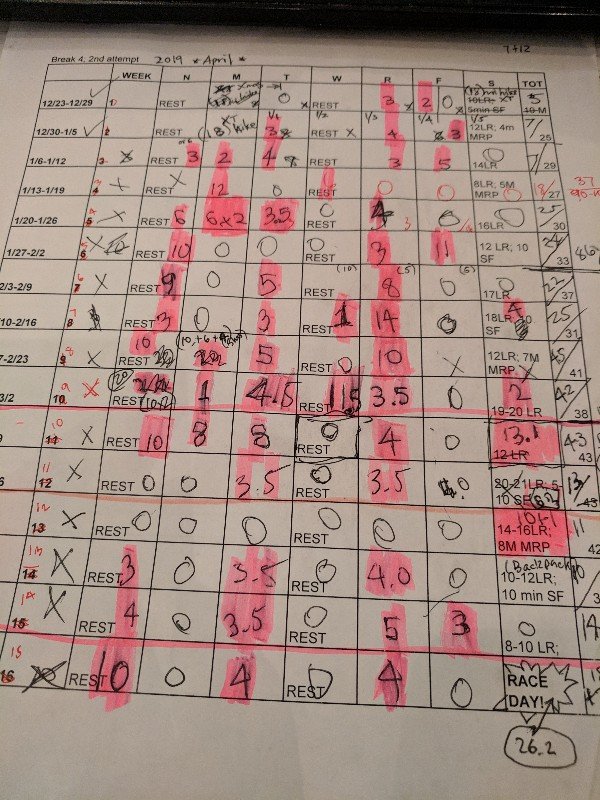 It is the last day on my training plan but no running for me today because …it is the day before my marathon. I totalled up my mileage this winter/spring training. I ran more miles than in previous trainings, just by a little, rounding up 350 miles (spread sheet says 346). Personally, I didn’t feel I have run that much over last 16 weeks. I had too much time off. I was aiming for 500 miles at the beginning. O well, maybe next time which is from summer to fall, I will put up 500 miles.