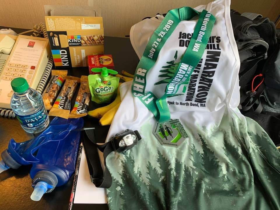 As expected marathons unlike ultras did not provide food at the aid stations. I also didn’t eat most of the food I brought with me to the course. Here is a picture of the left overs. It looked like as if it was for the start.