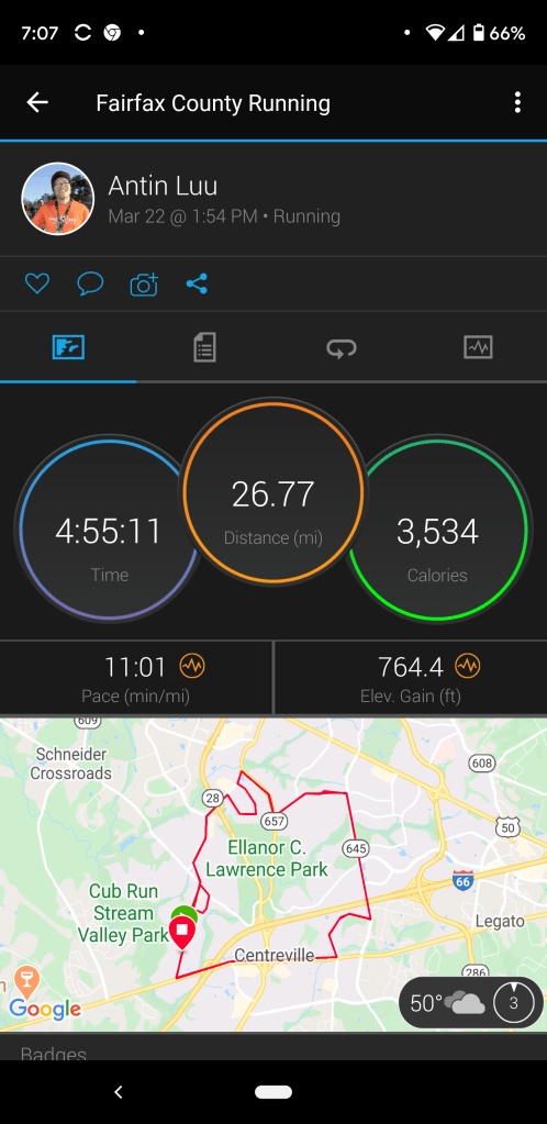 Why a marathon this weekend? I signed up for the DC rock n roll (was 3/28) but of course it was canceled due to the coronavirus. I knew I have to do a marathon either this weekend or the next as part of my training. Since I felt fresh, I decided to do it a week early. Also who knows if the government will issue a lockdown order in our area. I read about people running a marathon on their driveway or balcony. I wouldn’t want to do that unless there’s no choice.