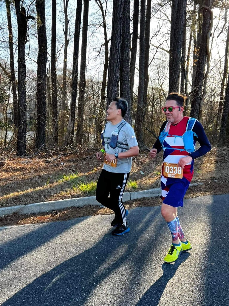 A friend from DC saw my social media post about the race and so he reached out to me, saying he would see me on the course. He and several of his friends were running it too. We met up at the start. They were much faster than me (1 hr faster). I told them to go ahead. I was able to run at his pace in the past, but today it was obvious I was not able to keep up. I gained much weight during the interim since I last ran with him. I blame it on the Covid weight (Covid 10).