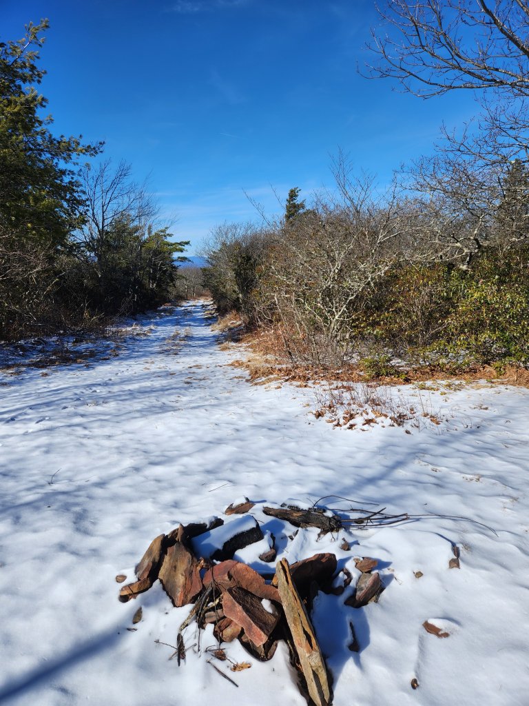 Snow got a bit deeper further up. My foot did not improve. Normally, I could walk it off. I got to Little Bald after three hours or so and only had hiked about 6.5 miles. I still wanted to continue on, so I started down on the other side to Camp Todd. I was hoping if my foot got worse, I could hike on the road to get back to the parking. It would still be a 9 mile hike back but on the road.