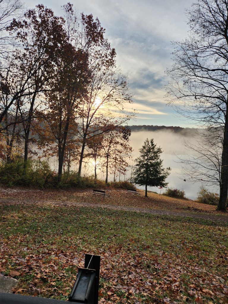 We probably had one of the best racing weather this time. It rained two days before, which helped a lot to pack down the leaves. It gave a more solid path to run on. I have been out on the course the last few weekends and running on leaves was a problem for me because they slided around underneath and also they cover over roots and rocks. The rain made the path easier to see. While rocks and roots and a bit of wet did make the course slipery at times, but generally, I think it was better than a totally dry course. The trail though was dry enough to run on. The day as any year started off cold (38F, and lower at some part), but it got up to 60 F, where we could be comfortable in a t-shirt and shorts. I dressed in layers and striped when needed. Some bridges had ice on them from frost. We saw a runner fell after stepping onto a bridge. I had a couple close calls.