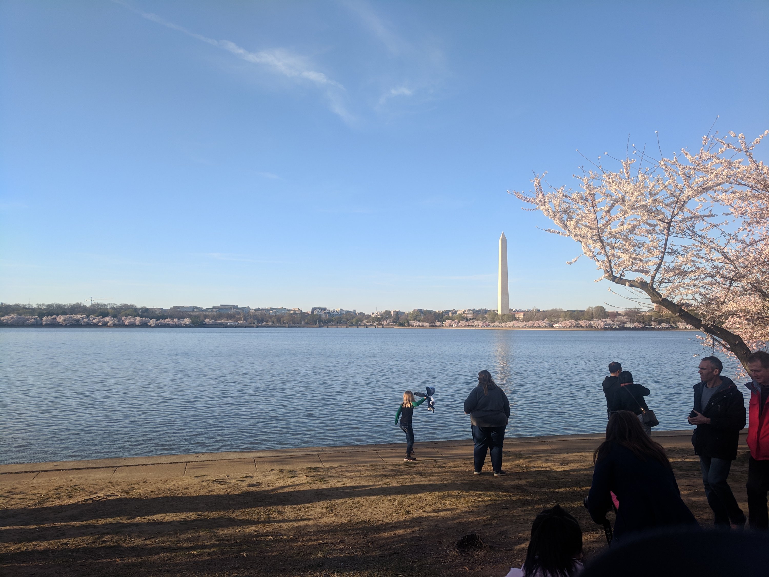 We walked to the Pentagon with thousands other people. Note, we knew we had to get there two hours before the start. Even then there were a ton of people already. We did wait around at a Starbucks earlier when it was not crowded. Caroline had to use the rest room. Yes, best advice is to hang out in a Starbucks, have breakfast before joining the crowd.