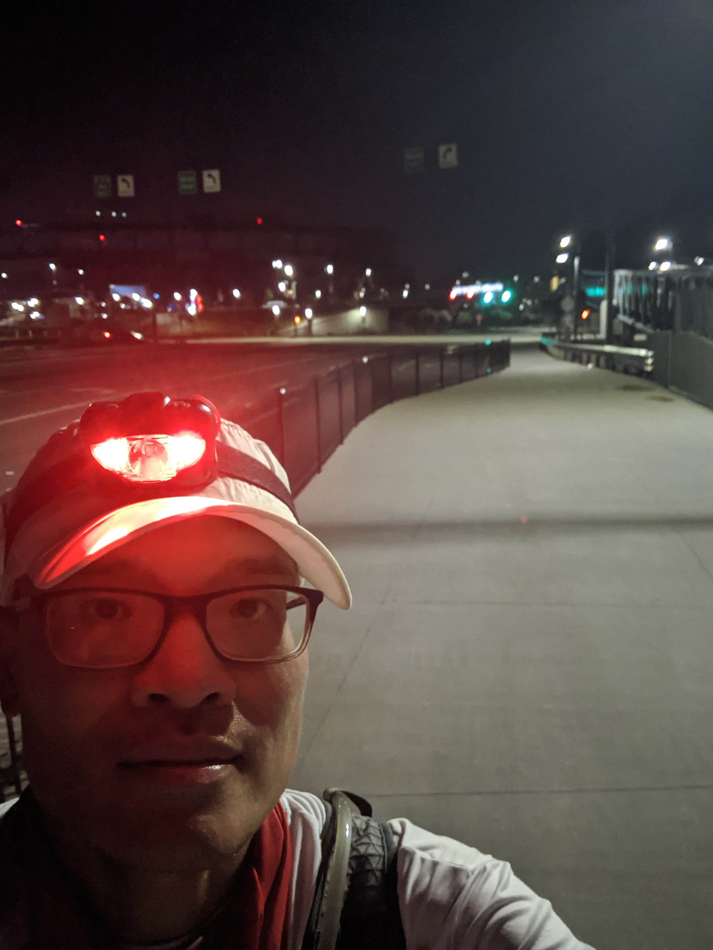 1:00 am. Bye bye stadium. I guess it was 1 am by now. I was still pretty fresh. My blood was flowing. I had some setbacks but again night was still early. I had maybe 5 hours more of darkness and I could do another 20-30 miles before day break. I got to make a lot miles now the night is a bit cooler. I was still sweating bucket but the temperature was around 80 degree. I was wearing long sleeves and felt like 90-100 inside.